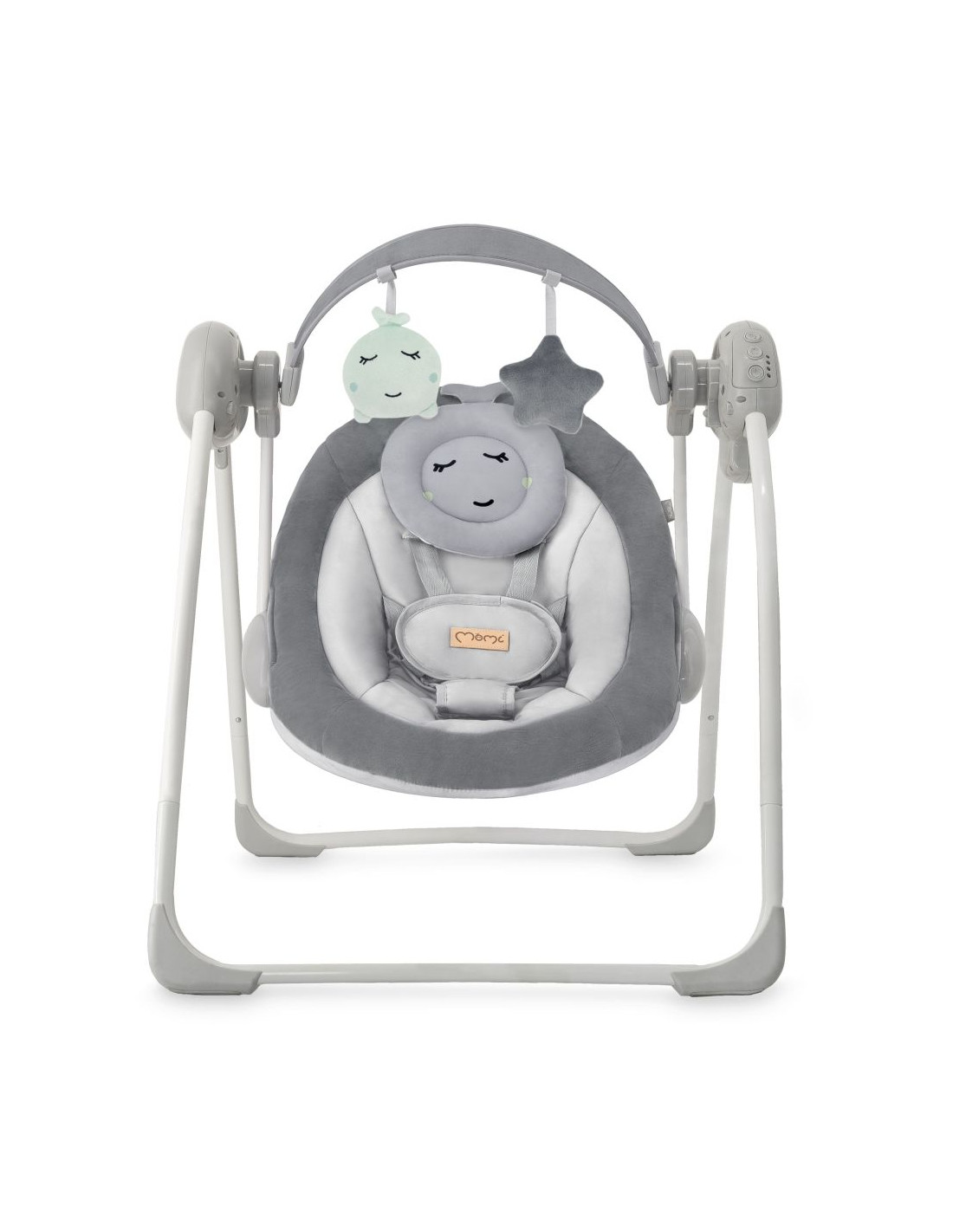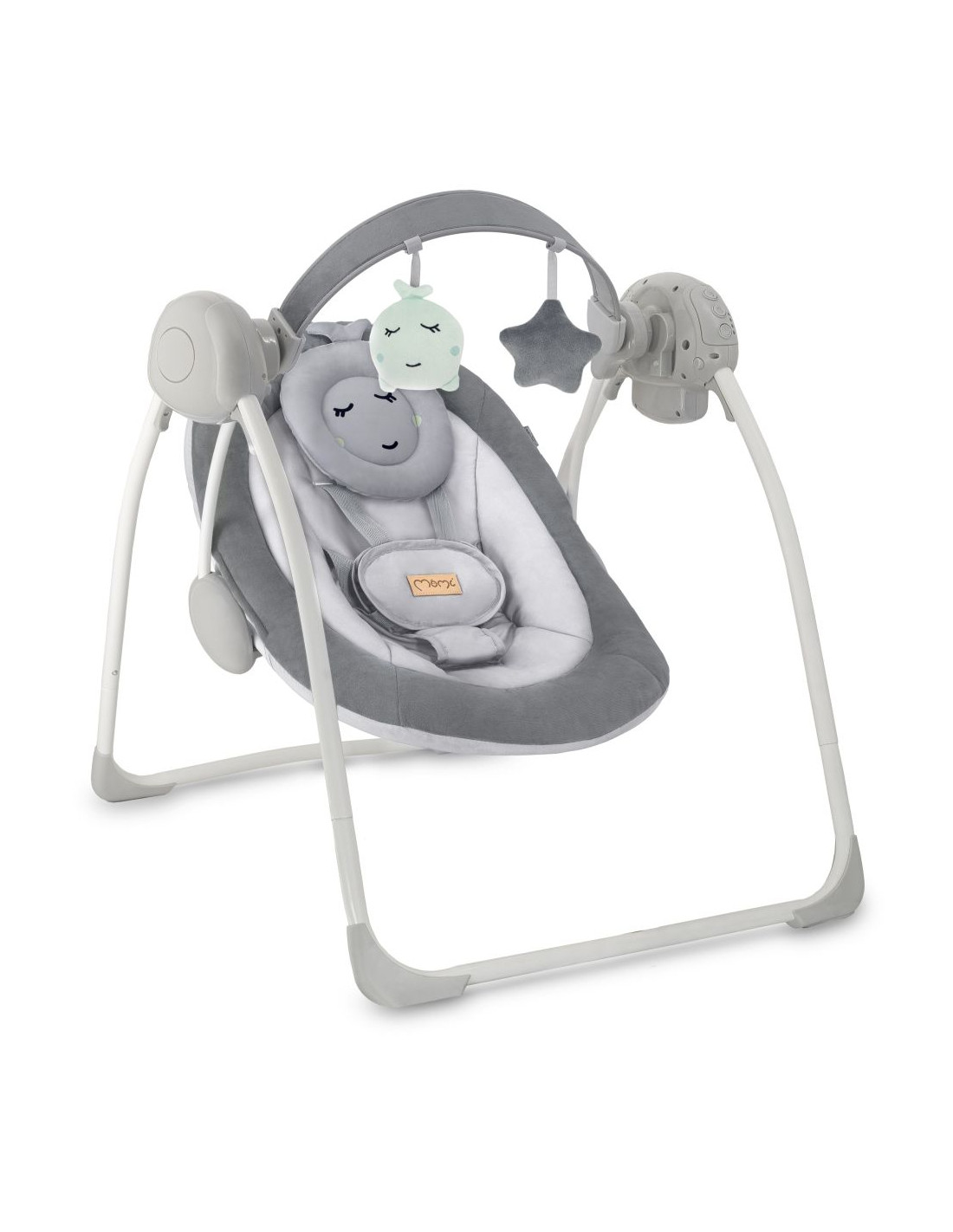 Elektrické houpátko MoMi LISS se vyznačuje stabilní skládací konstrukcí, která zajišťuje pohodlné skladování a úsporu místa. Má 5 rychlostí houpání a časovač pro automatické vypnutí zařízení. Vestavěných 6 melodií zpříjemní čas dítěti a hrazdu s hračkami navíc povzbudí k hraní. Sedátko z měkkého materiálu zajišťuje komfort a přiložený polštářek zvyšuje pohodlí malého uživatele.