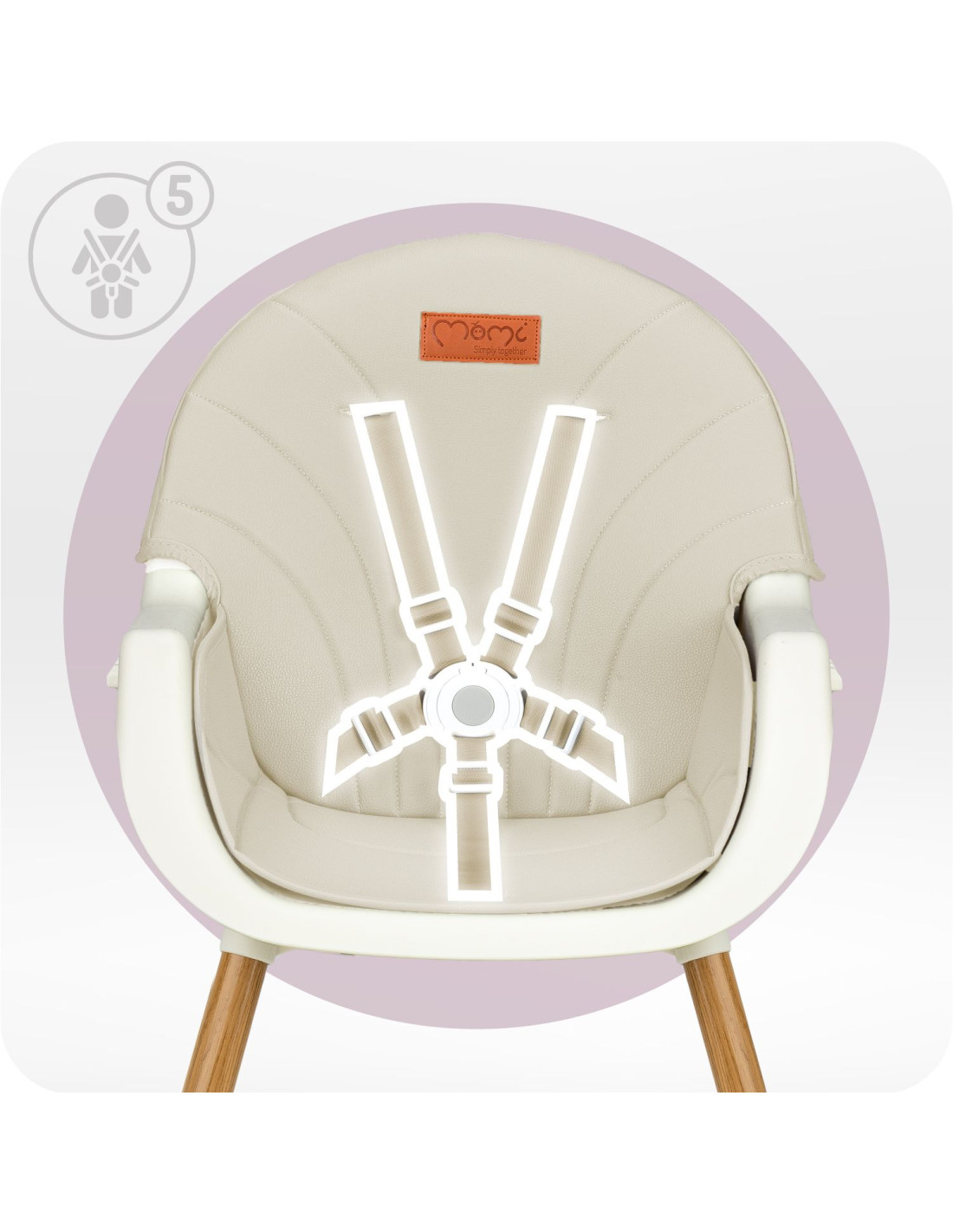 Jednoduché linie a minimalistický design jsou základními prvky MoMi JUA. Opěradlo bylo navrženo tak, aby při jídle podpíralo záda. |