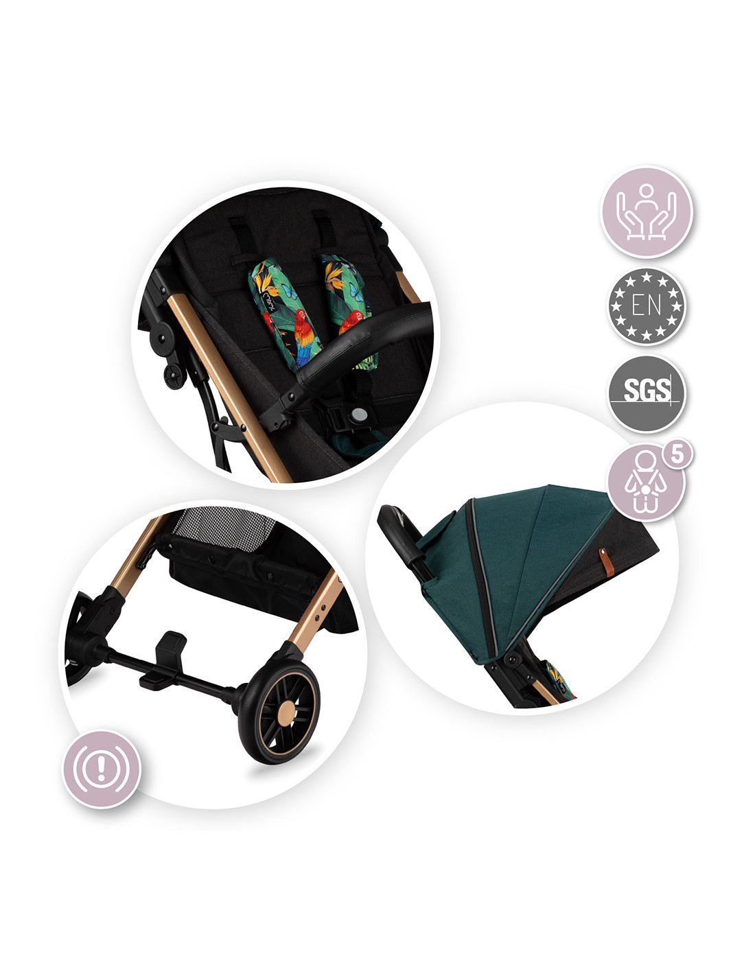 Kočárek MoMi ESTELLE zelený se zlatým rámem