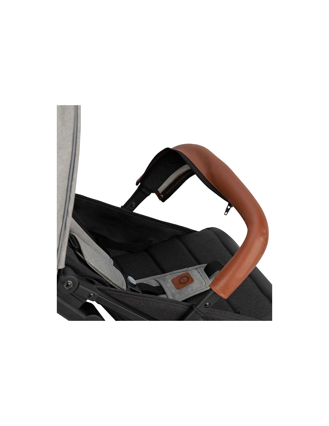 Rukojeť pro tlačení kočárku a madlo v přední části jsou potaženy ekologickou kůží. Pod ní se nachází další pěnová vrstva, která poskytuje dvojnásobnou ochranu. |