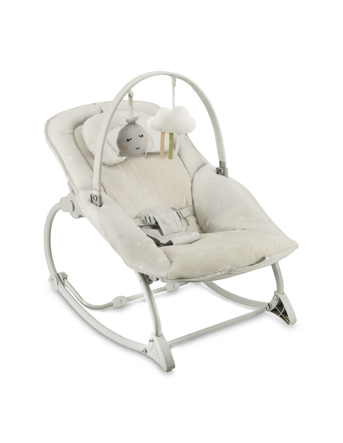 Houpátko MoMi LAPIS je vybaveno senzorickým modulem s melodiemi a vibracemi a také hrazdičkou s hračkami. Nastavitelný úhel opěradla umožňuje snadno přizpůsobit polohu houpátka individuálním potřebám děťátka.