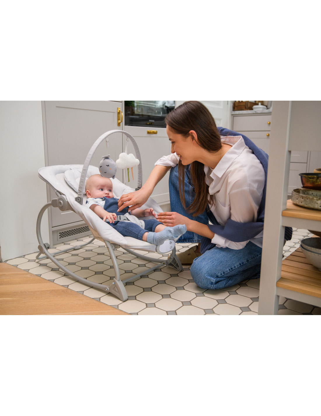 Houpátko MoMi LAPIS je vybaveno senzorickým modulem s melodiemi a vibracemi a také hrazdičkou s hračkami. Nastavitelný úhel opěradla umožňuje snadno přizpůsobit polohu houpátka individuálním potřebám děťátka.